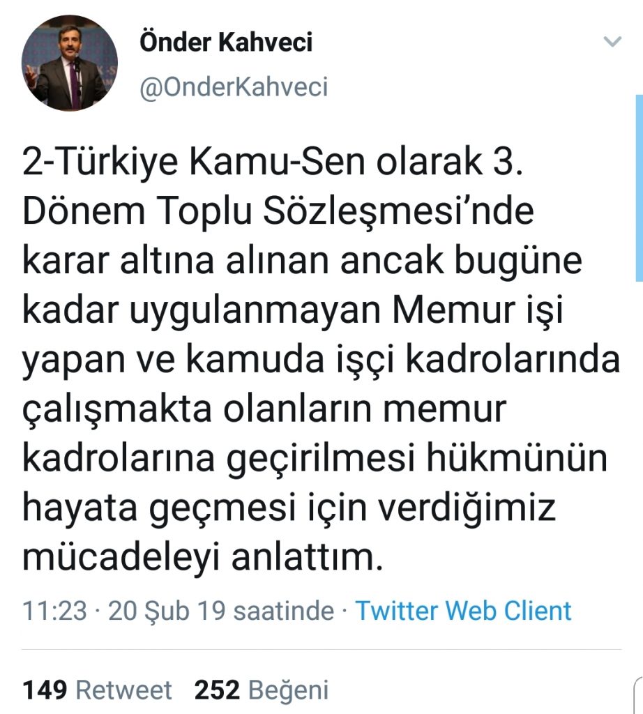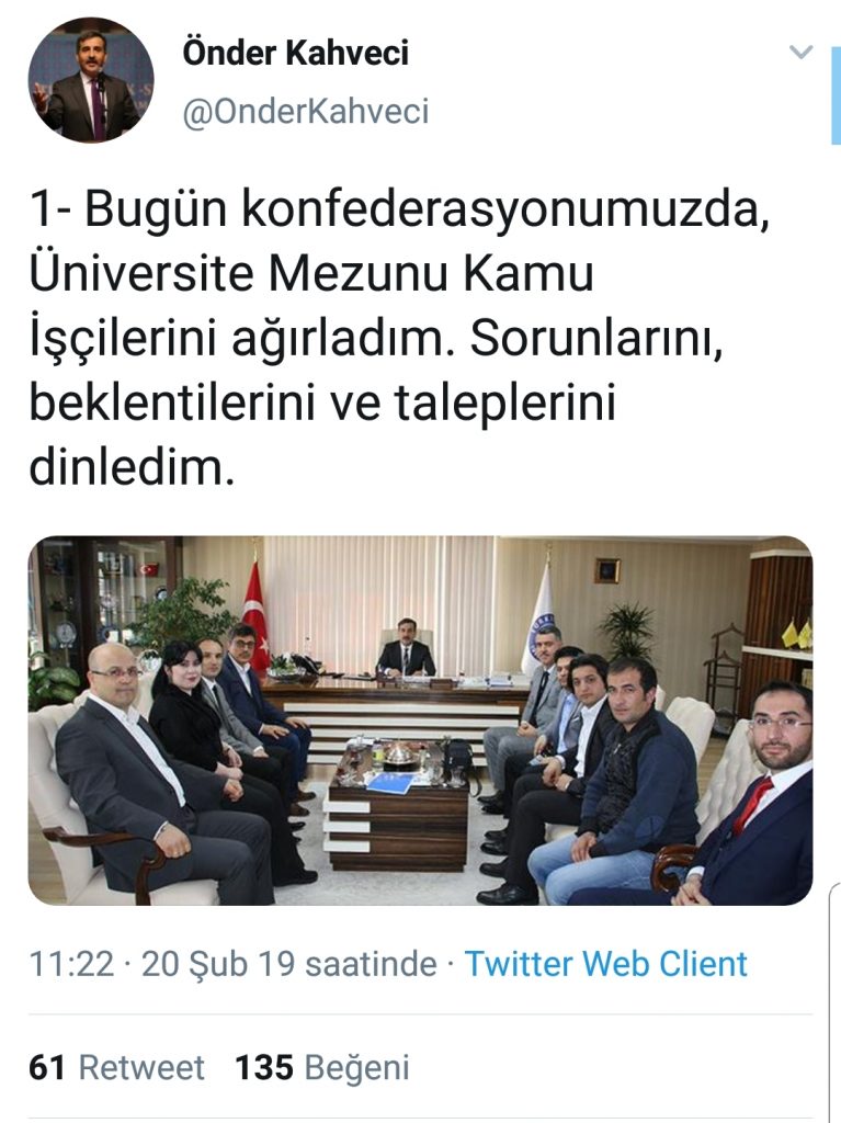 Türkiye Kamu-Sen Genel Başkanı Önder KAHVECİ ziyaretimizin ardından Twitter aracılığı ile destek tweetleri atması platformumuzca umut kaynağı oldu.